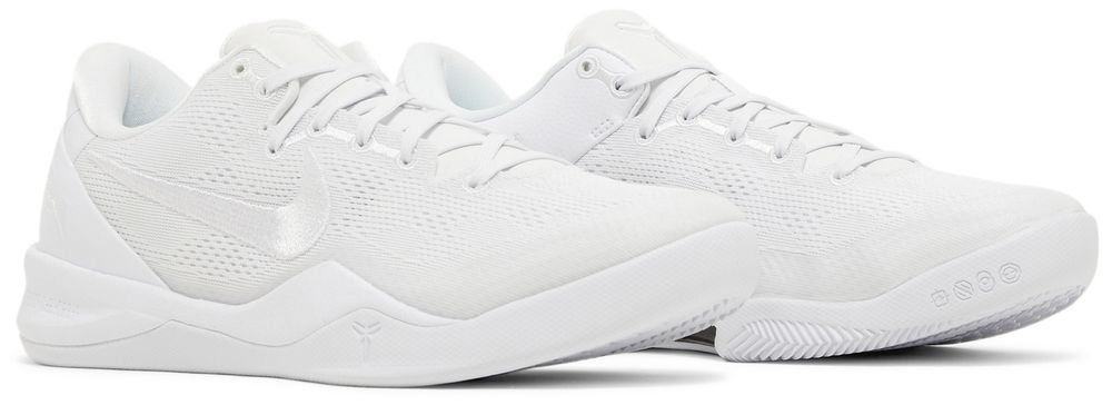The Nike Kobe 8 Protro 'Halo,' also known as the 'Triple White,' brings back a retooled version of Kobe Bryant's eighth signature shoe in a blank-slate finish.. Designed by Eric Avar, the low-top features an all-white engineered mesh upper with tonal embroidered Swoosh branding. Kobe Bryant’s signature is etched on the external heel counter, while the athlete’s personal logo decorates the tongue. Performance benefits include a drop-in React midsole and carbon fiber shank. Underfoot, a herringbone-tread outsole delivers stop-and-go traction